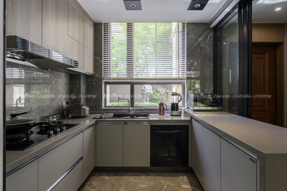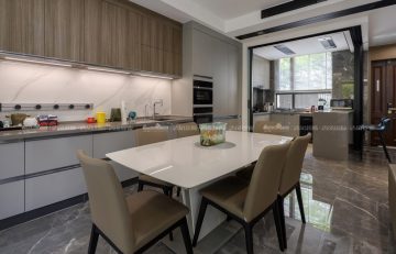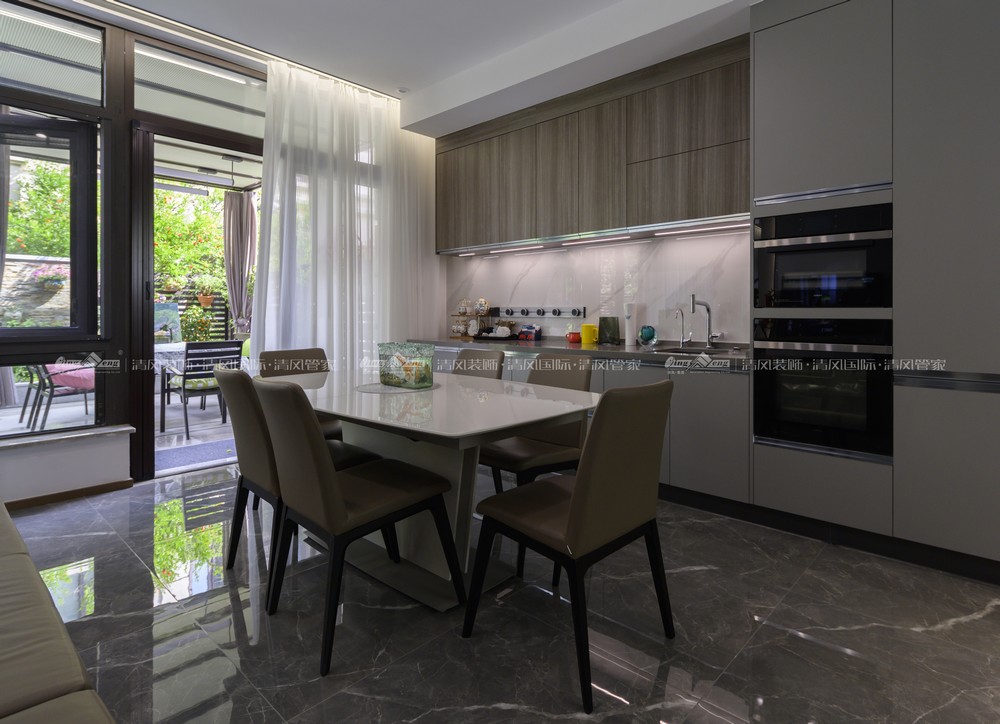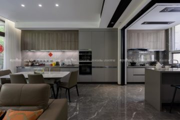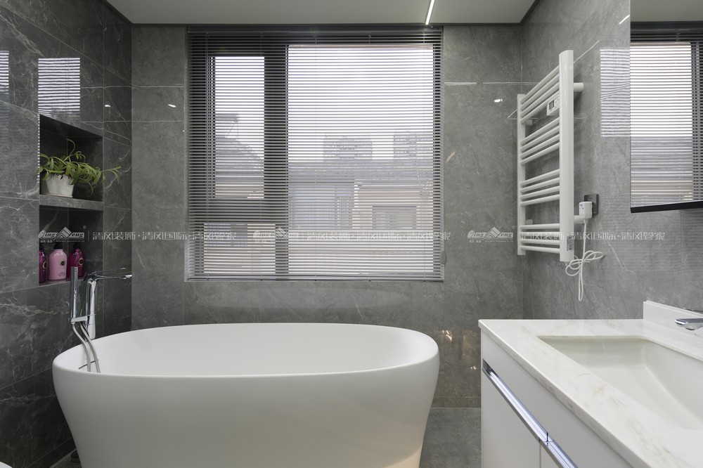 空間設計,無須華麗的裝飾,無須貴重的家具,材料的運用和色彩的搭配就能顯出個性與品位。本案多處借“灰”這個中性色彩,消弭空間和空間的界限,使室內更顯寬闊簡潔而時尚,同時讓家更寧靜溫馨。